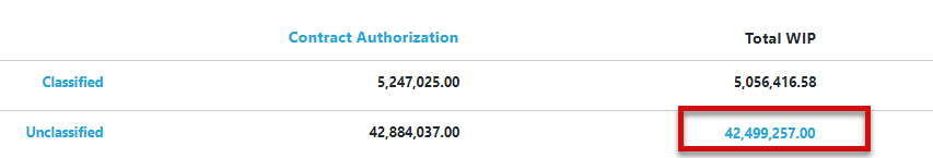 - Click the Unclassified WIP under Total WIP in the Summary table